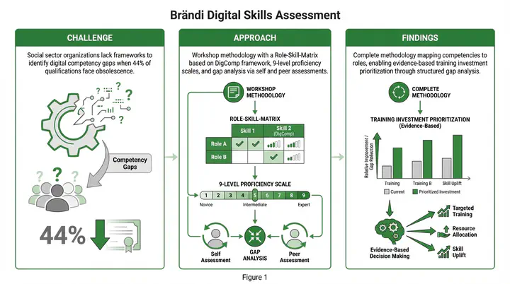 The World Economic Forum projected that 44% of professional qualifications would be outdated by 2027, yet organizations in the social sector faced particular difficulties in identifying skill gaps and designing effective upskilling strategies. Stiftung Brandi, a Swiss social and professional foundation based in Kriens, needed to understand which digital competencies its employees required, where gaps existed relative to current skill levels, and which training offerings could close those gaps. No systematic framework for digital competence assessment and development existed for their workforce.